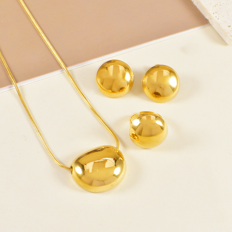 Very simple scenery ball three-piece set European and American all-match earring necklace opening adjustable ring stainless steel jewelry