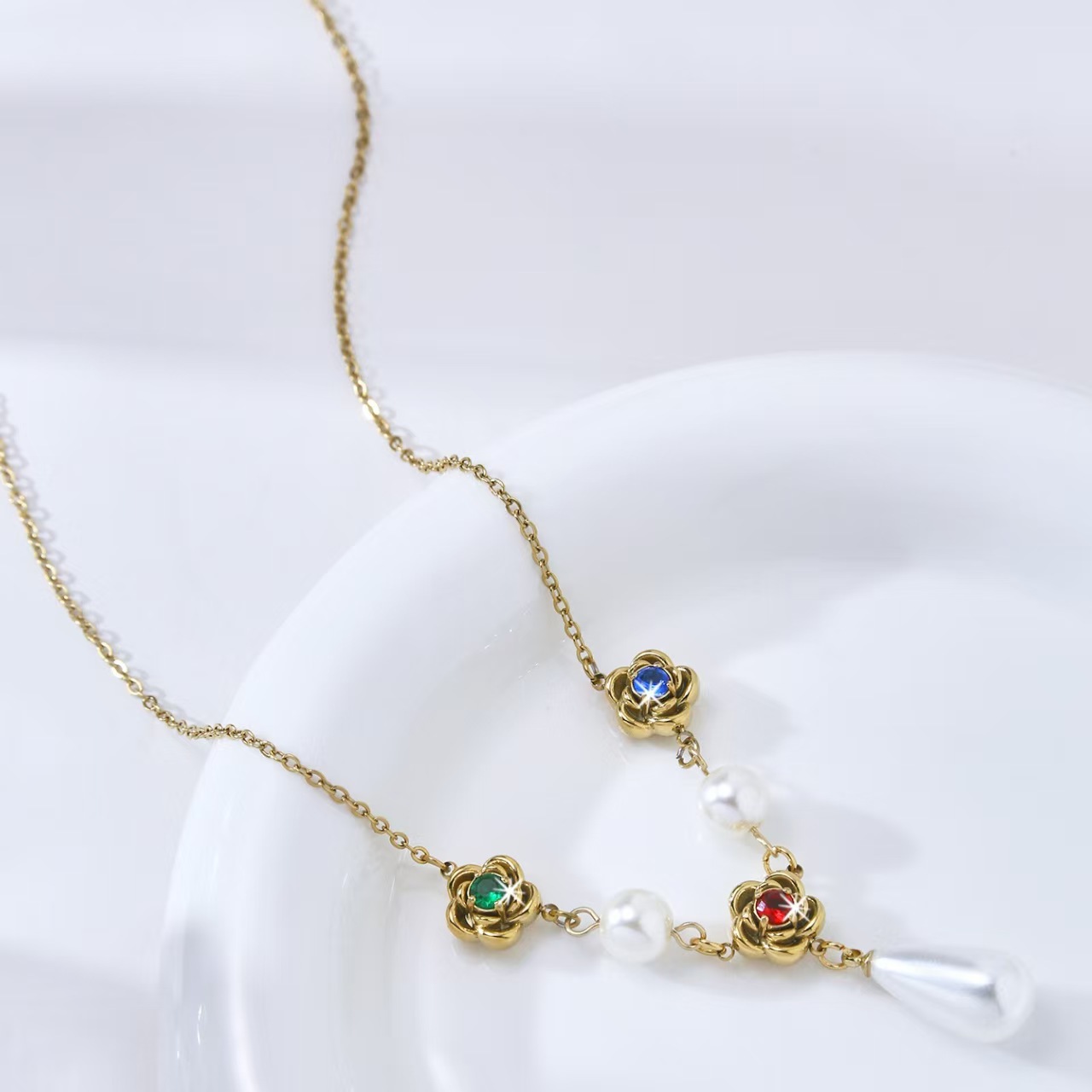 2025 New Cross-Border Rose Necklace Bracelet Set Feminine Retro Pearl Bracelet Whitening Niche Design