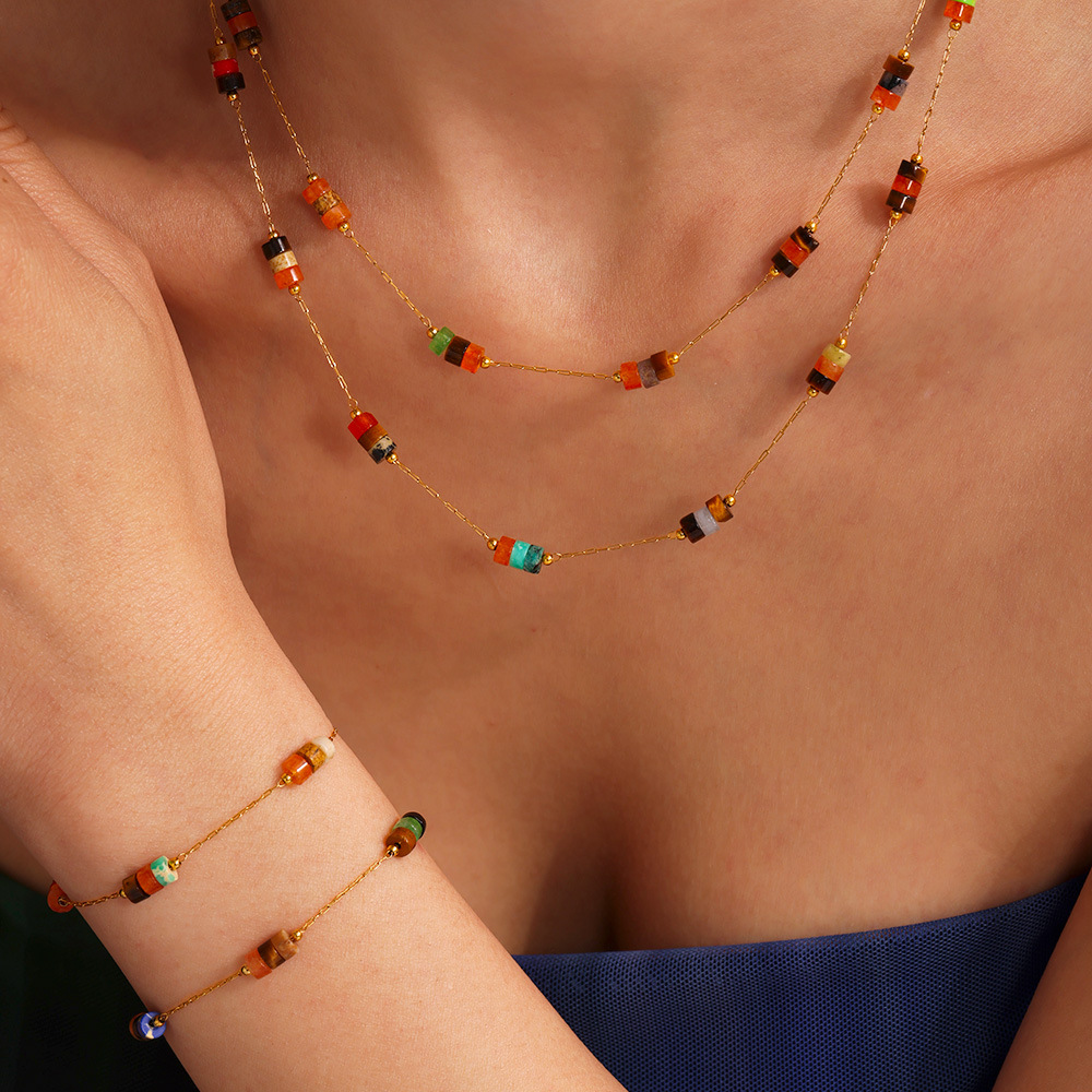 Seattle Antique Style Personalized Natural Tiger Eye Stone Hand-Beaded Stainless Steel Bracelet Necklace Set Color-Preserving Ready Stock