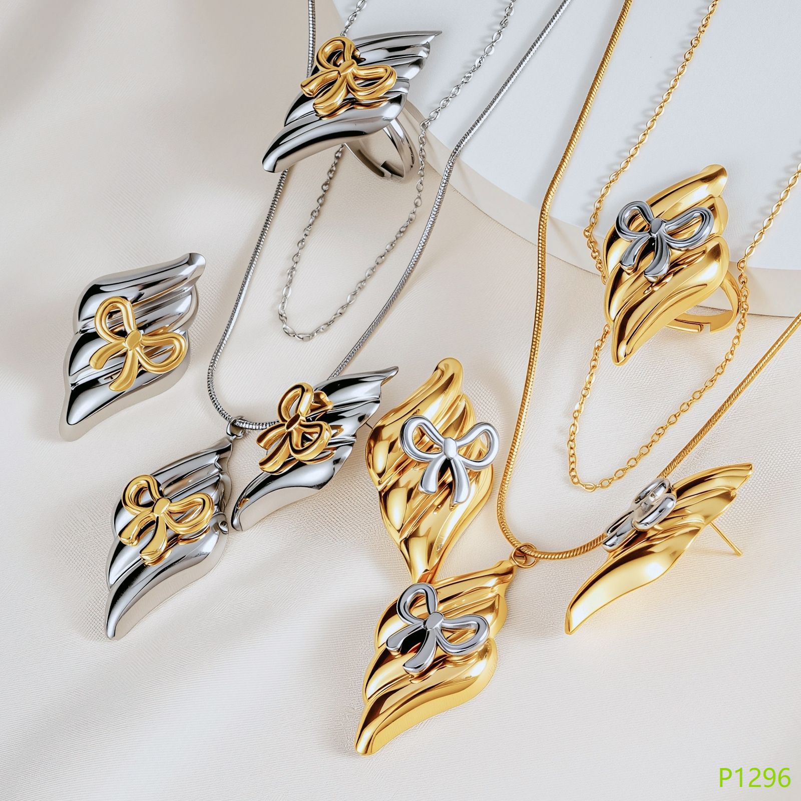 Stainless Steel 2025 New Niche Design Cut Out Butterfly Pendant Necklace Earrings Pearl Bracelet Jewelry Set for Women