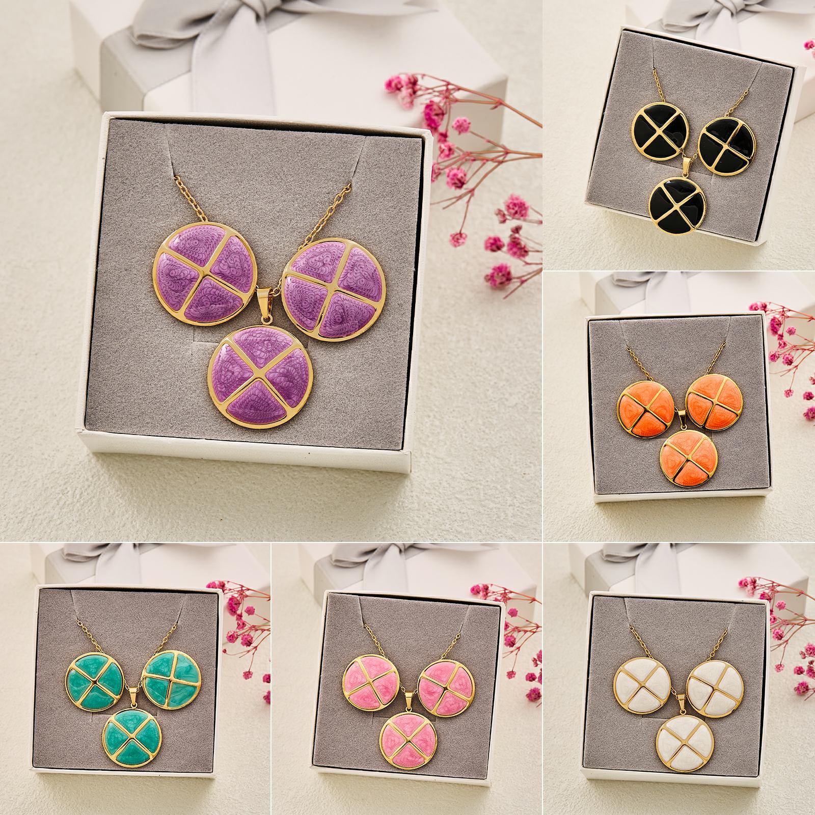 European and American Cross-Border Exaggerated High-End Stainless Steel Earrings, Oil-Dropping Necklace Set, Simple and Versatile Stainless Steel Earrings