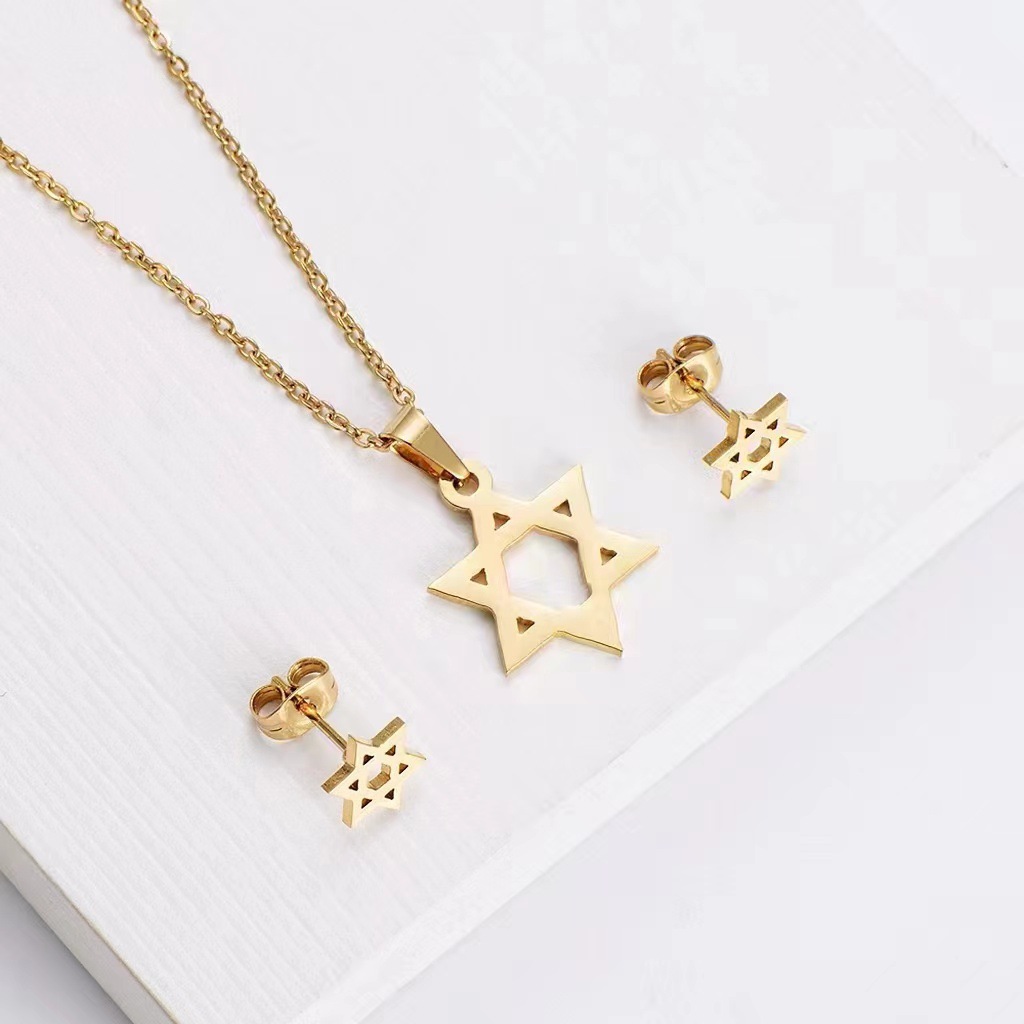European and American jewelry wholesale stainless steel six-pointed star necklace earrings set simple hollow star necklace women