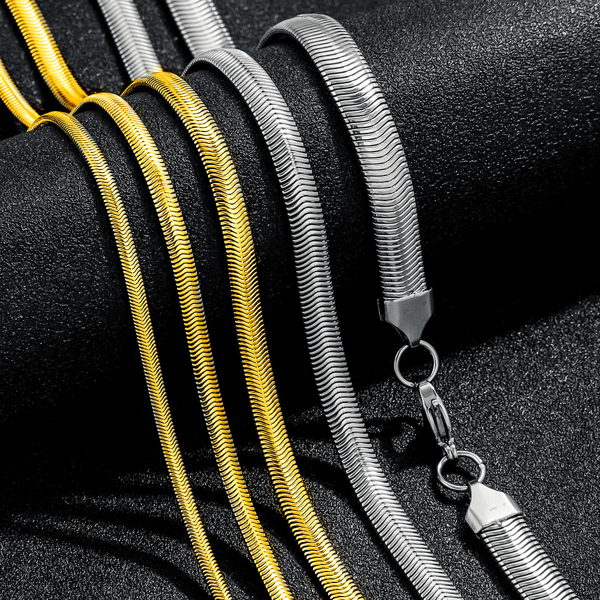 Stainless Steel Flat Snake Necklace Flat Snake Bone Chain Hip Hop Style Old Snake Chain Thin Encryption Snake Chain Electric 18K Gold Necklace