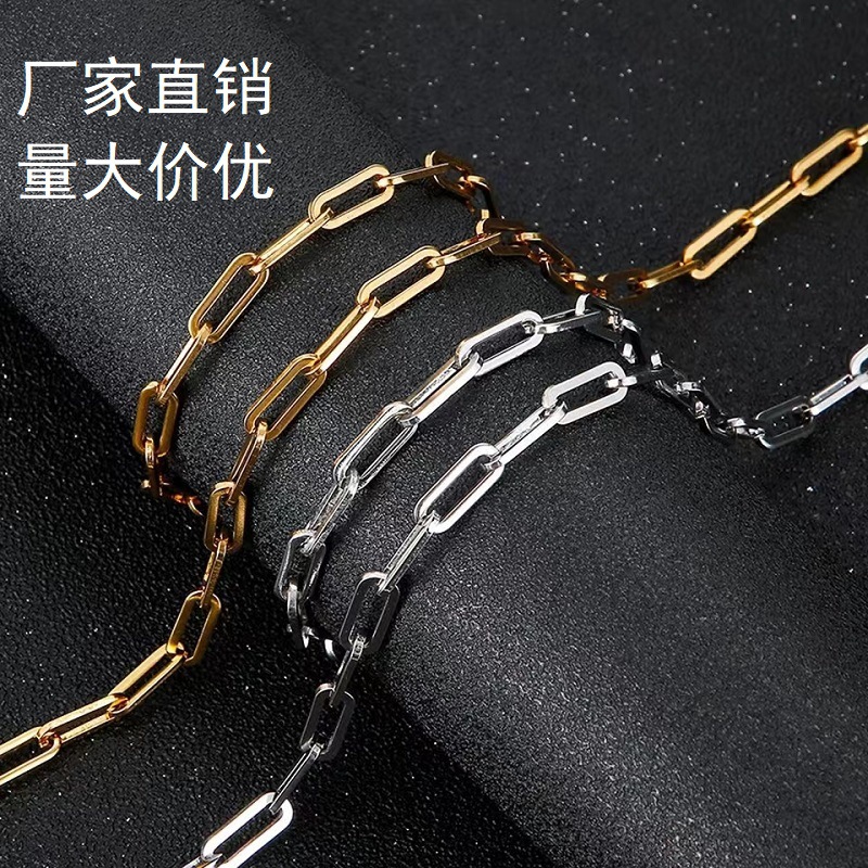 European and American style necklace simple versatile titanium steel paper clip chain stainless steel sweater chain necklace diy Oval chain