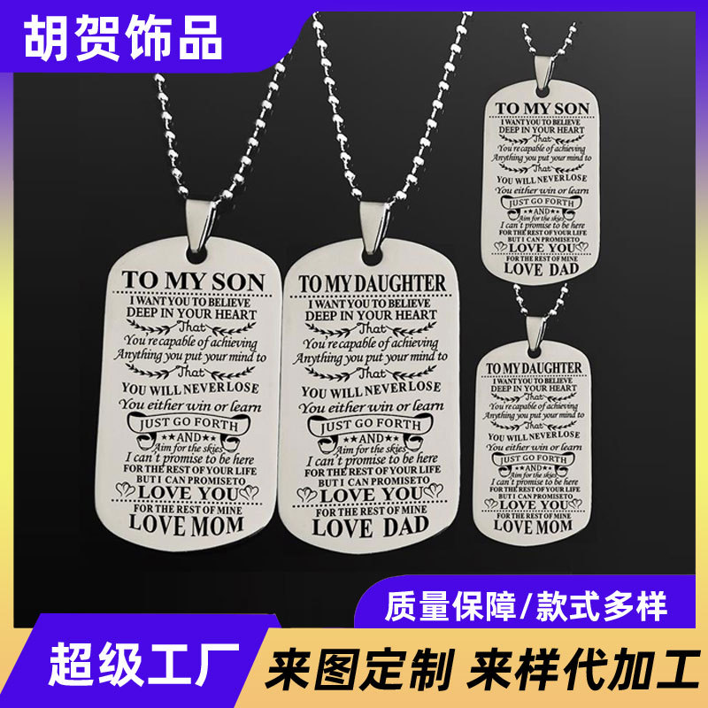 Large Stainless Steel Military Brand Necklace Tag Ball Chain Necklace Titanium Steel Engraved Dog Tag European and American Jewelry Pendant Gift