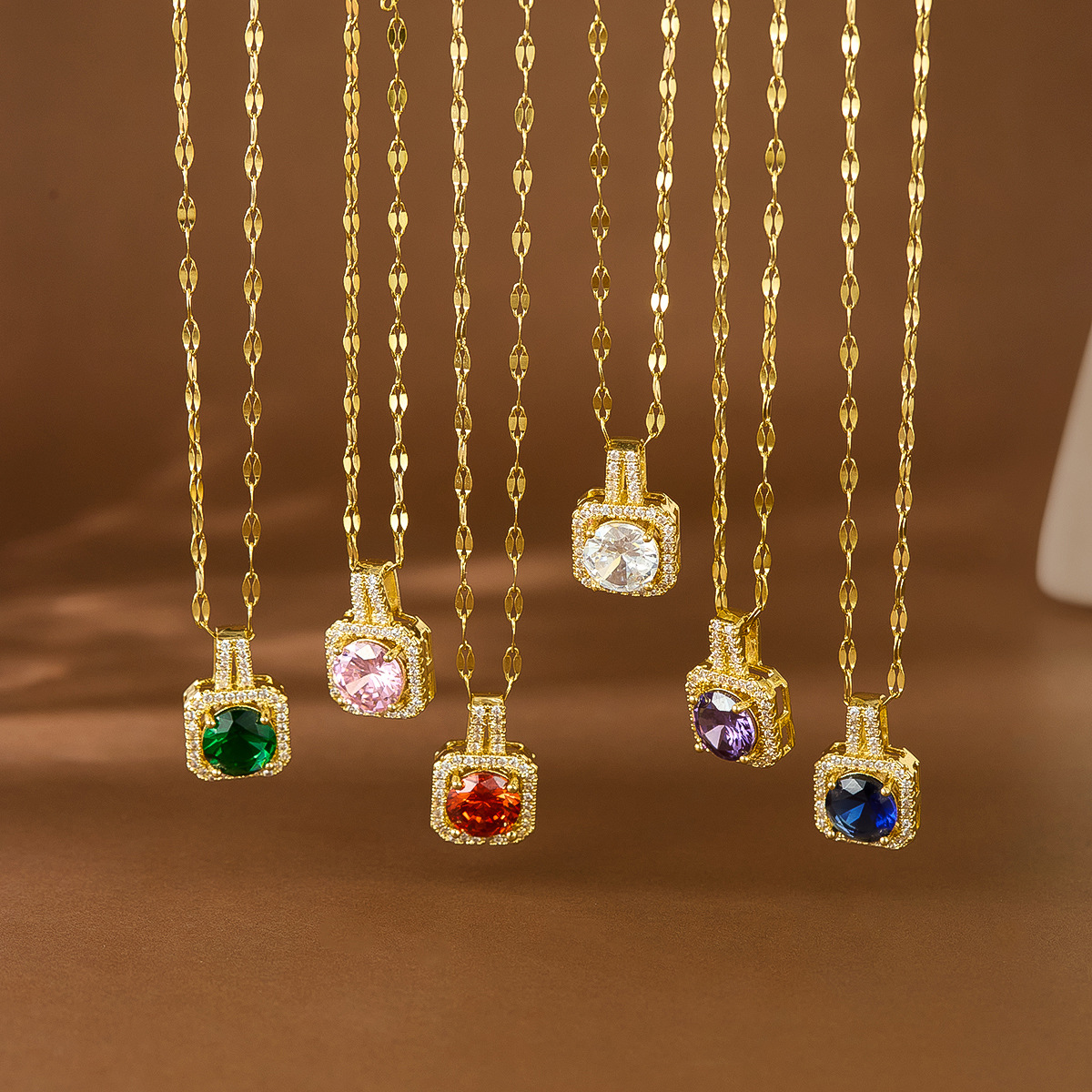 Cross-Border Popular Super Flash Colorful Square Diamond Necklace High-End Fashion Versatile Temperament Colorful Zircon Clavicle Chain Wholesale