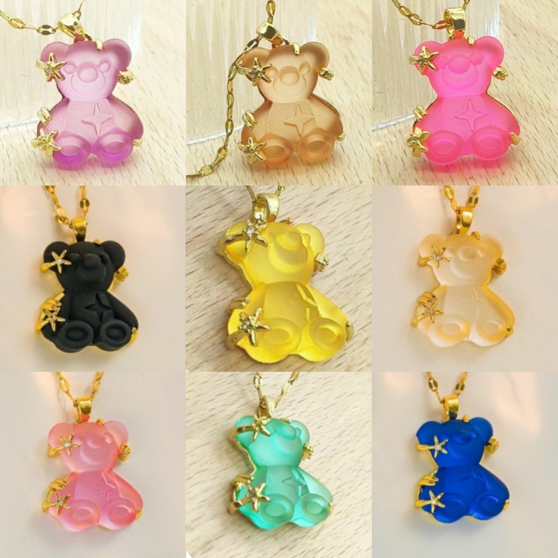 Fashion Women's Accessories Copper Micro-Inlaid Zircon Resin Bear Pendant Stainless Steel Necklace Niche Jewelry 2024 New Style