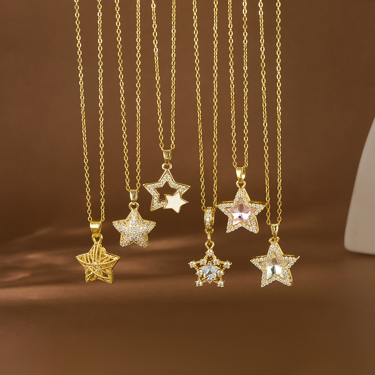 European and American Popular Micro-Paved Zirconium Five-Pointed Star Pendant Necklace Exquisite Niche Design Clavicle Chain Women's Stainless Steel Jewelry Trend