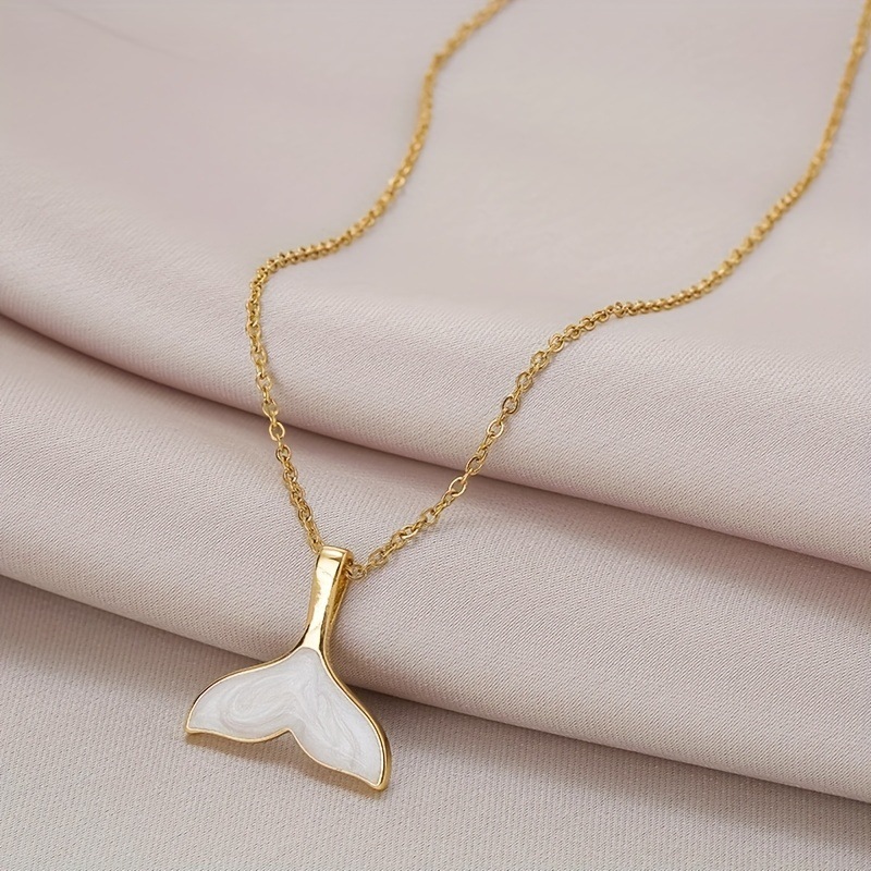 18k Gold-plated Fashionable Fishtail Drop Glue Stainless Steel Necklace Women's Simple Elegant Clavicle Chain All-match Light Luxury Style Decoration