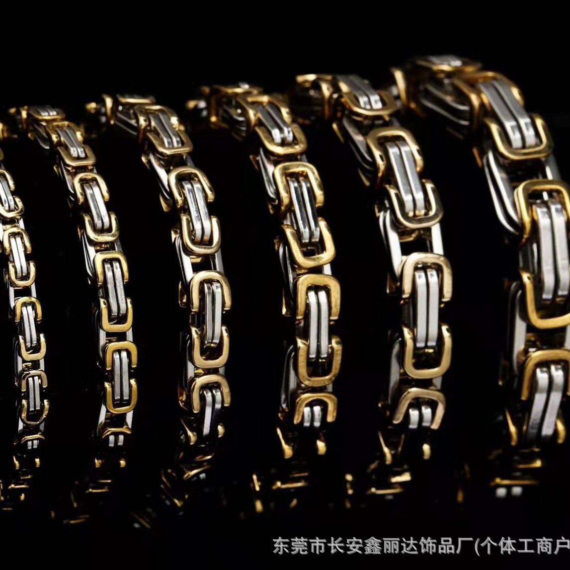 Amoy source European and American hip-hop fashion stainless steel imperial chain necklace golden titanium steel imperial chain Byzantine necklace