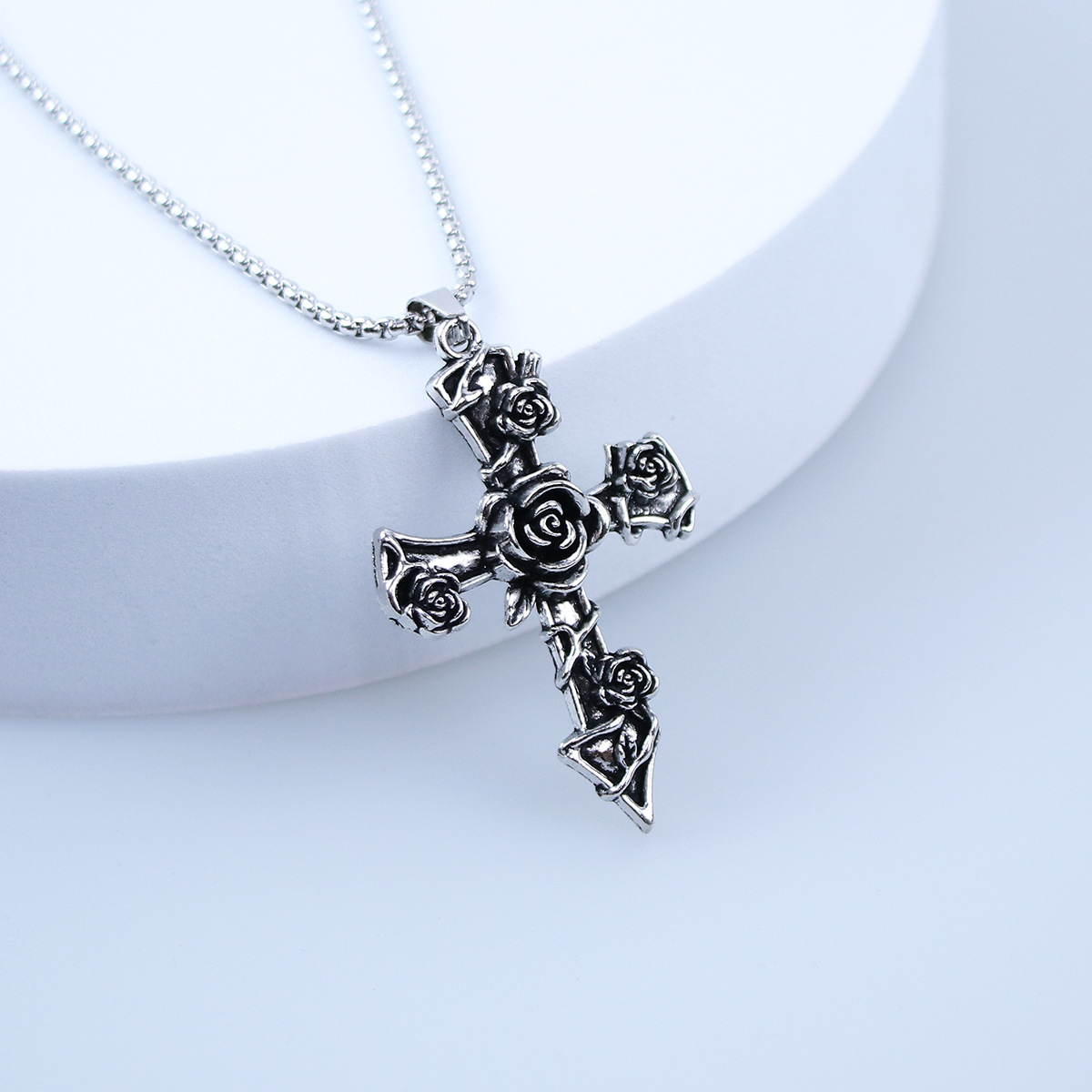 Cross-Border Dark Rose Cross Necklace Female Sweet Cool Sexy Style Yk Hip-Hop Clavicle Chain Accessories Personalized Sweater Chain