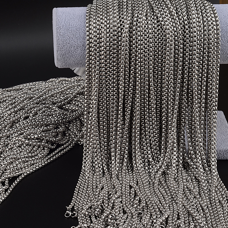 Cross-Border Square Pearl Chain Wholesale Stainless Steel Men's and Women's Plain Necklaces Hip-Hop Titanium Steel Jewelry Chain Amazon Accessories