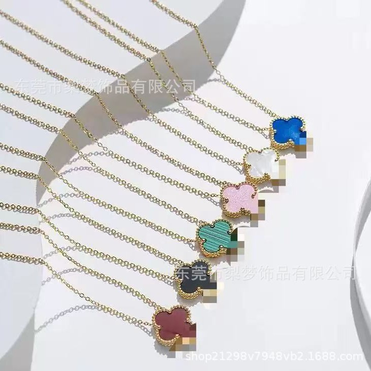 Fanjia High Version Lucky Four-Leaf Clover 15mm Side Slot Necklace Fashionable Elegant 18 Stainless Steel Pendant Clavicle Chain