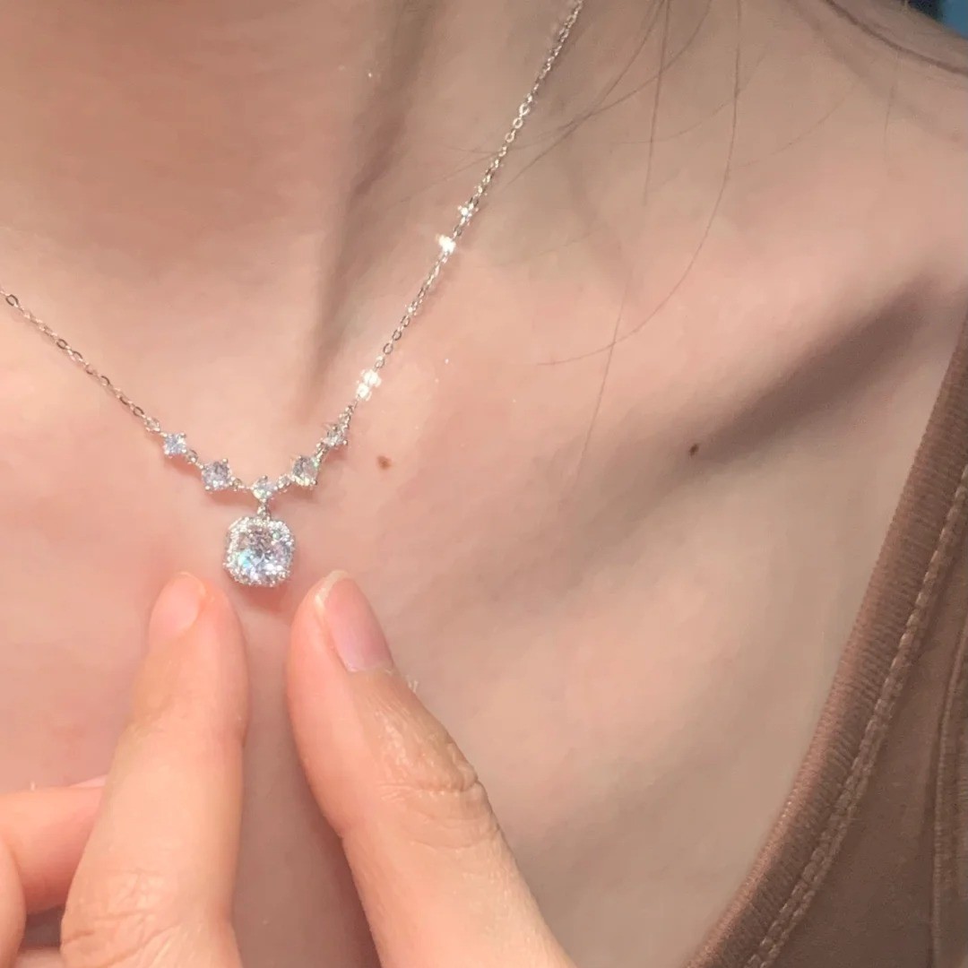 Cube Light Luxury Flash Zirconium Necklace Female Niche Design Sense Ins Autumn and Winter Daily Commuter Zircon Stainless Steel Clavicle Chain