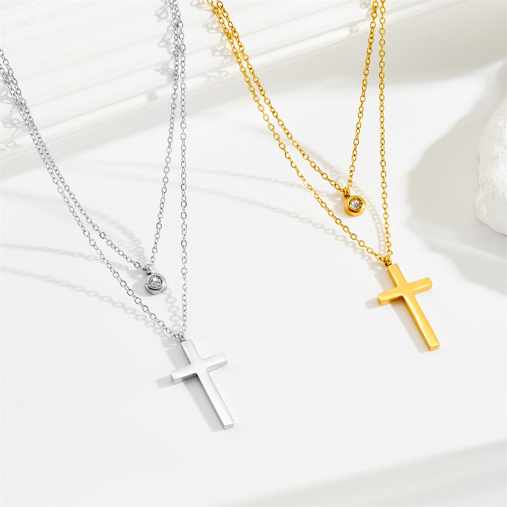 L52 Wholesale Cross-Border Amazon Stainless Steel 18K Gold Single-Layer Simple Cross Pendant Necklace Can Be Shipped on Behalf of Others