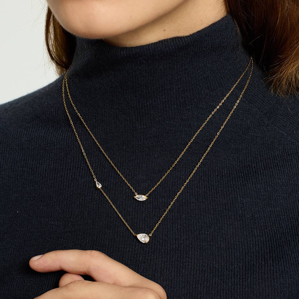 European and American Ins Accessible Luxury Exquisite Water Drop Marquise Zircon Necklace Plated with 18K Gold Stainless Steel Stacked Clavicle Chain Necklace for Women