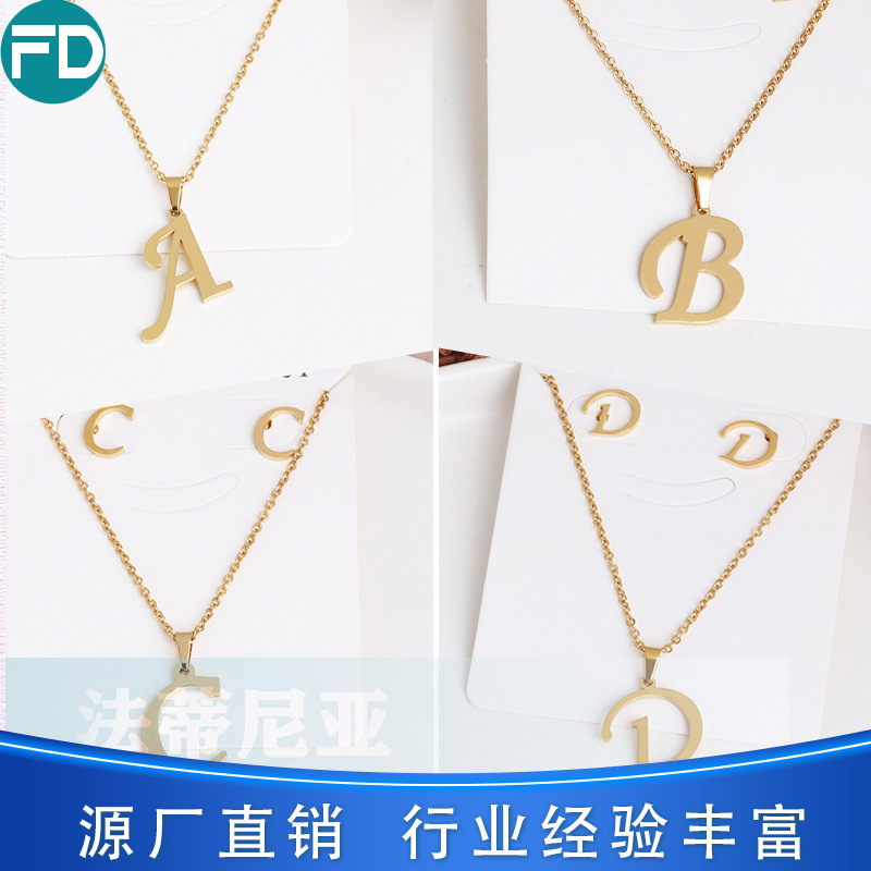 2024 new stainless steel pendant 26 English letter necklace European and American fashion jewelry does not fade spot wholesale
