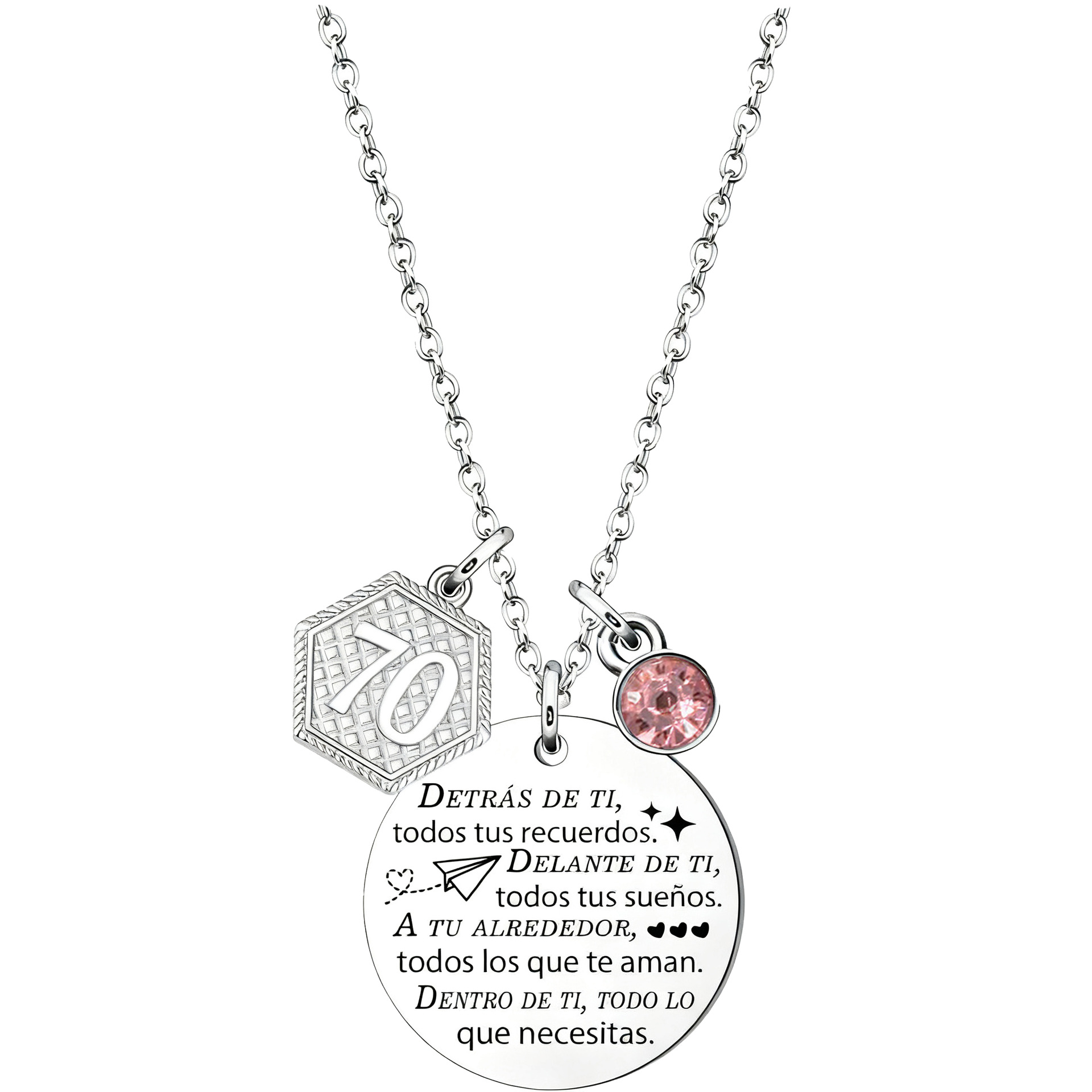 Stainless Steel Round Plate Necklace Birthday Gift Round Plate Engraved Hexagonal Birthstone Pendant Necklace Hexagonal Necklace