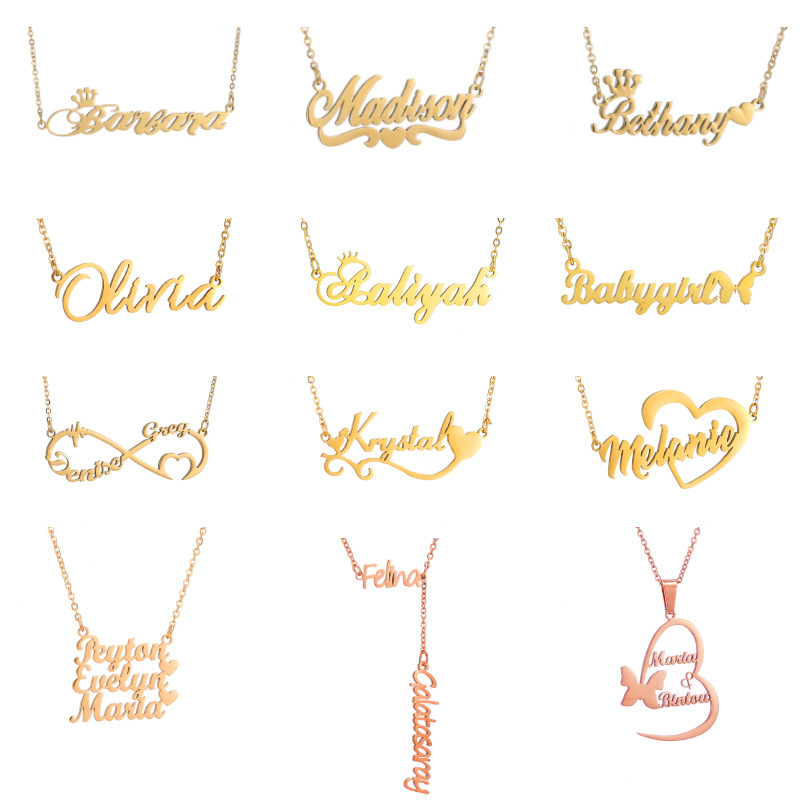 DIY stainless steel name necklace real gold plated English alphanumeric necklace love Crown hot selling element necklace