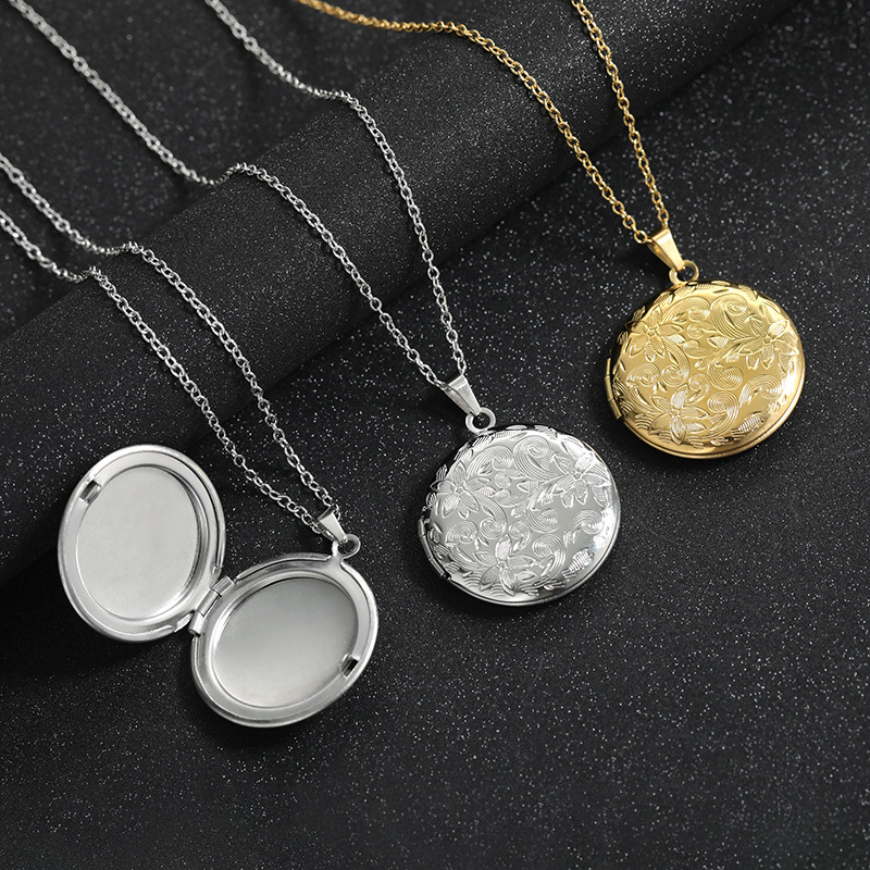 European and American hand-polished photo box pendant photo frame pendant photo mirror stainless steel square box necklace