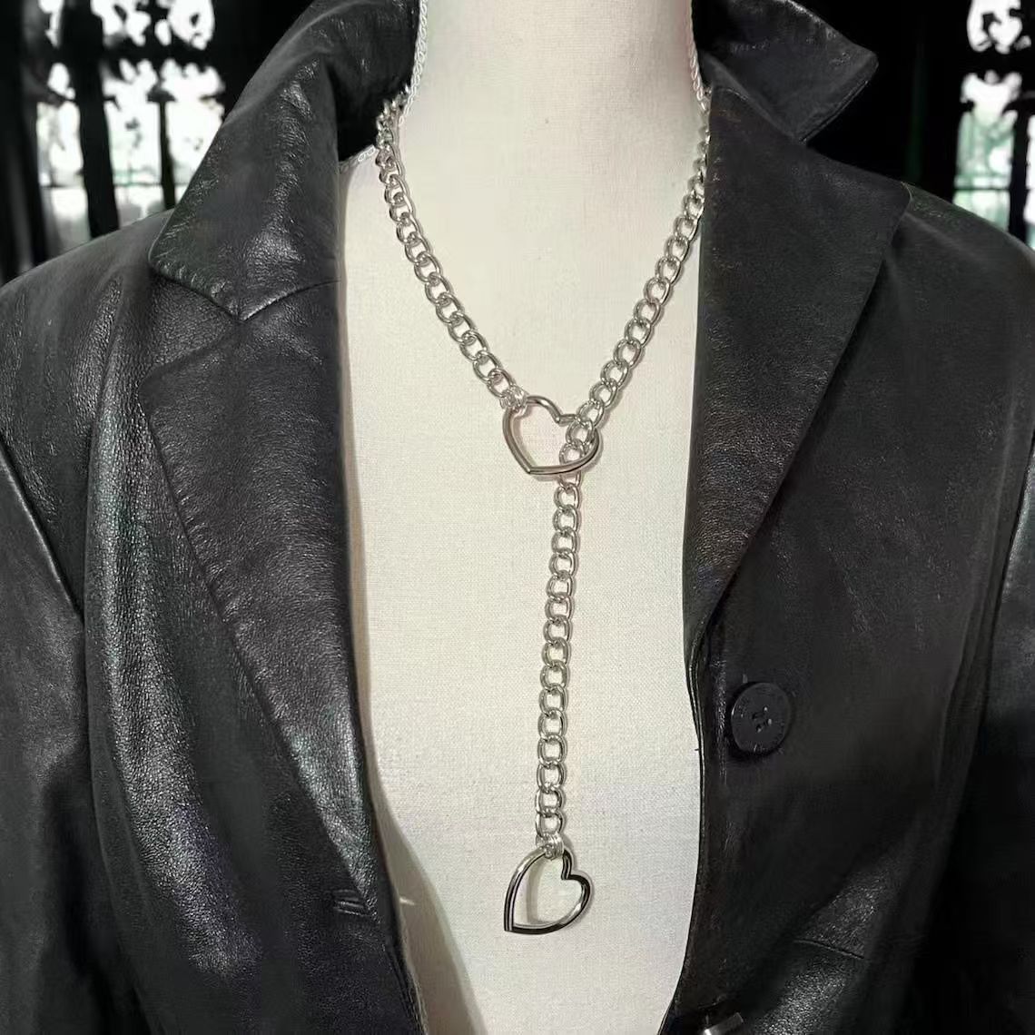 European and American New Lasso Heart-Shaped Necklace Peach Heart-Shaped Sliding Chain Necklace Men's and Women's Punk Rock Stainless Steel Necklace