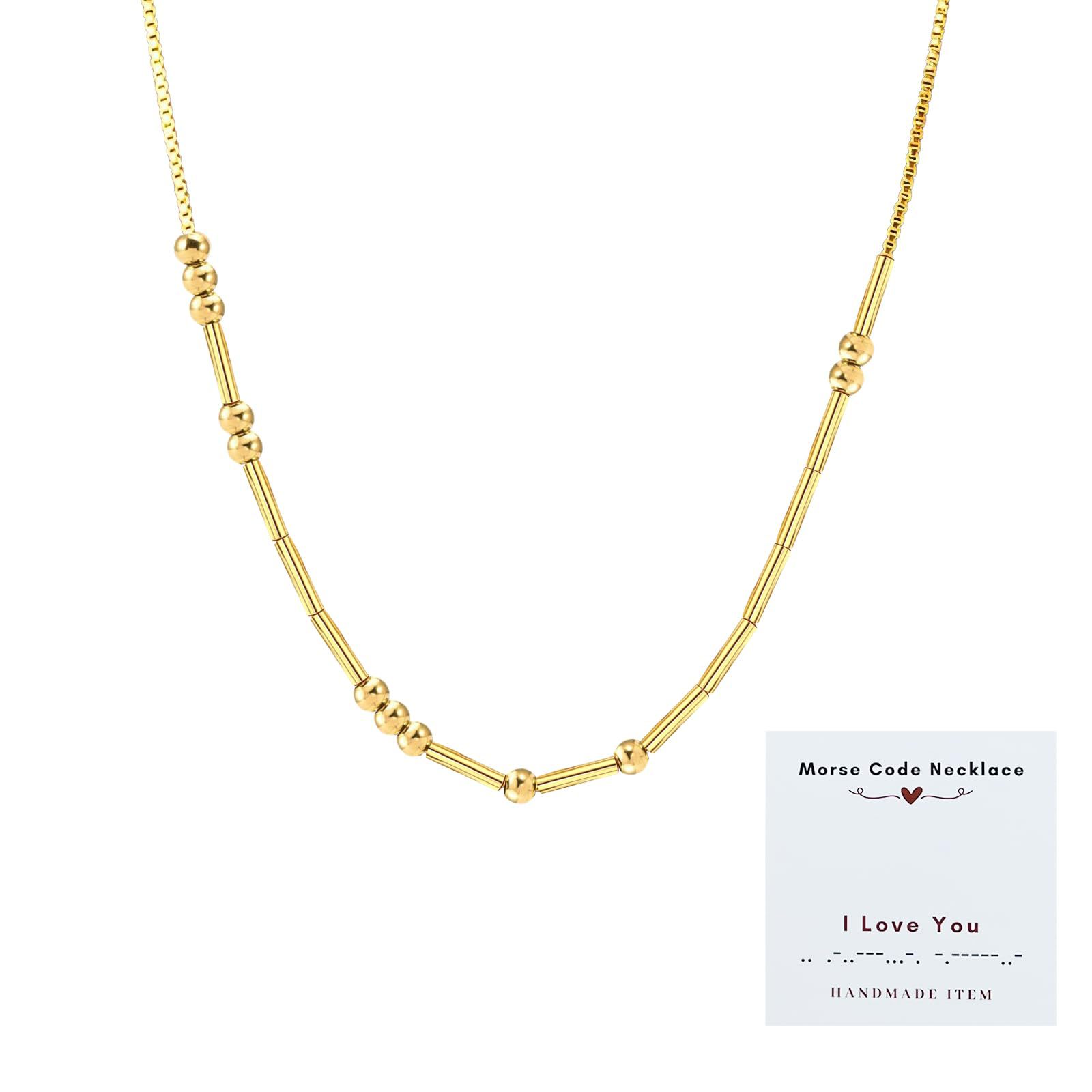 Morse Code Gold-Plated Small Necklace for Women and Men, Adjustable Vintage Clavicle Chain, Niche Accessory, Pony Necklace