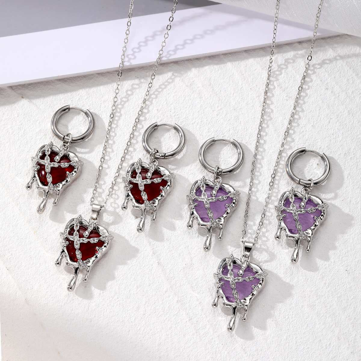 Cross-border Retro Popular Lava Love Necklace Earrings Imprisoned Heart Exquisite Stainless Steel Ear Ring Couple Jewelry