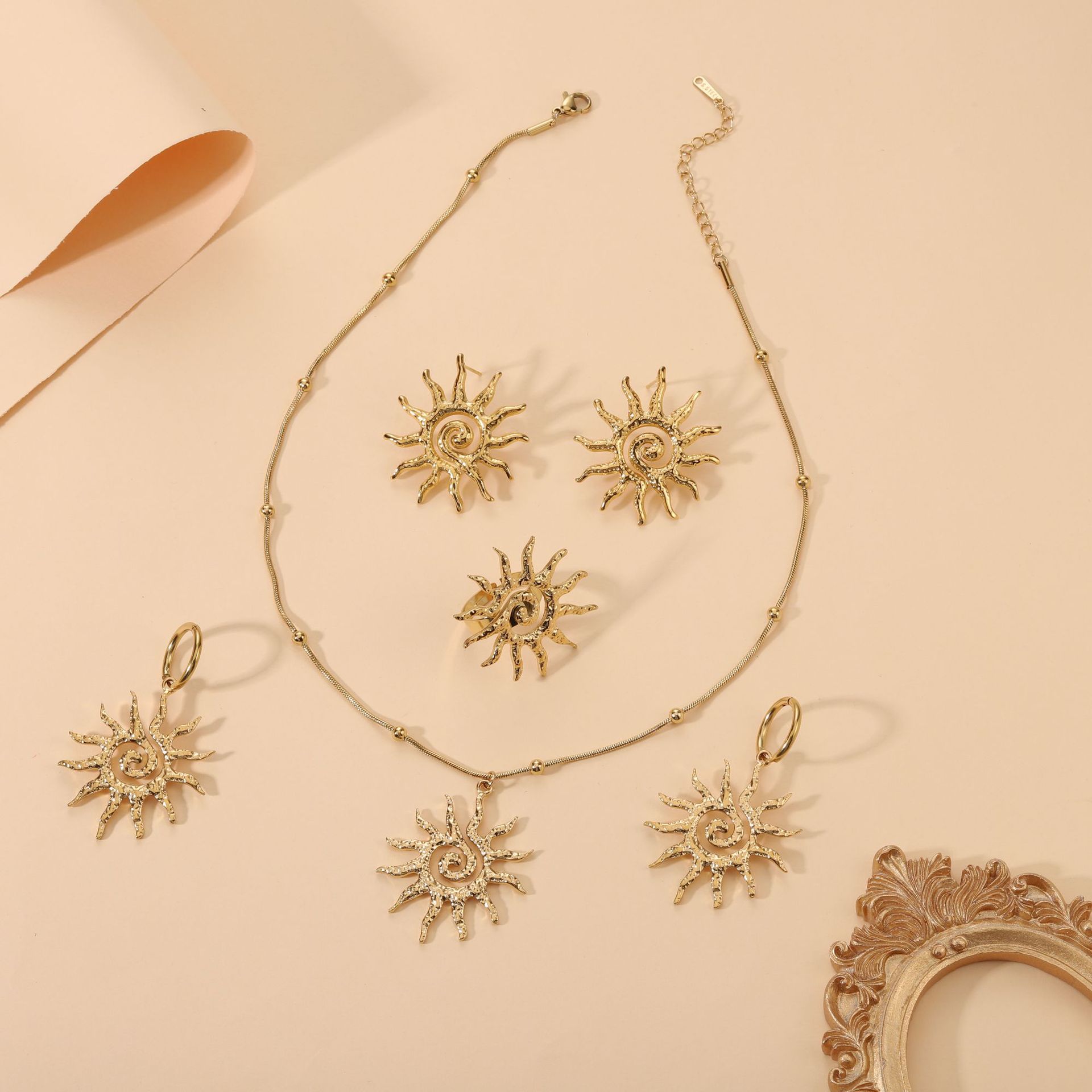 European and American New Style Stainless Steel Hammered Spiral Sun Pendant Necklace Light Luxury Titanium Steel Clavicle Chain High-End Jewelry for Women