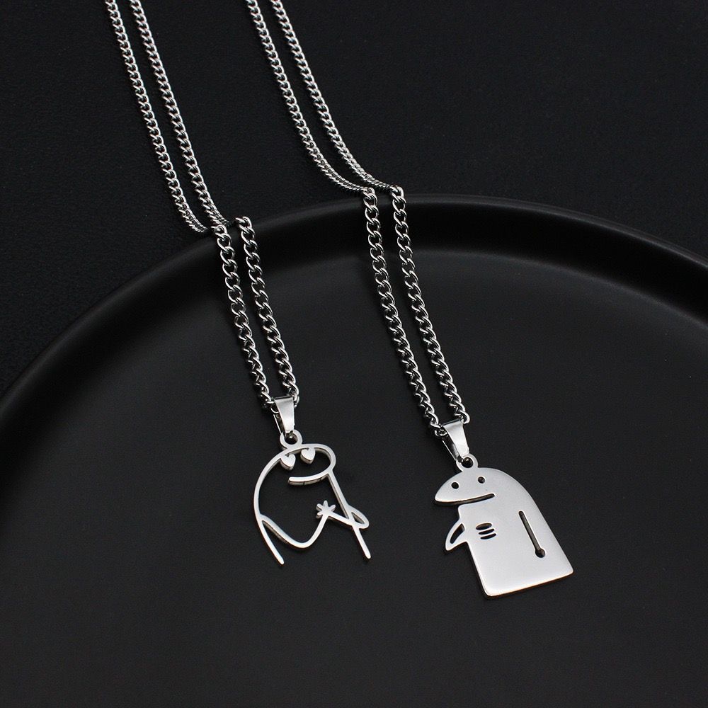 Couple Funny Cute Little Necklace Stainless Steel Cut Out Pendant Creative Bestie Cartoon Gift ins Trend