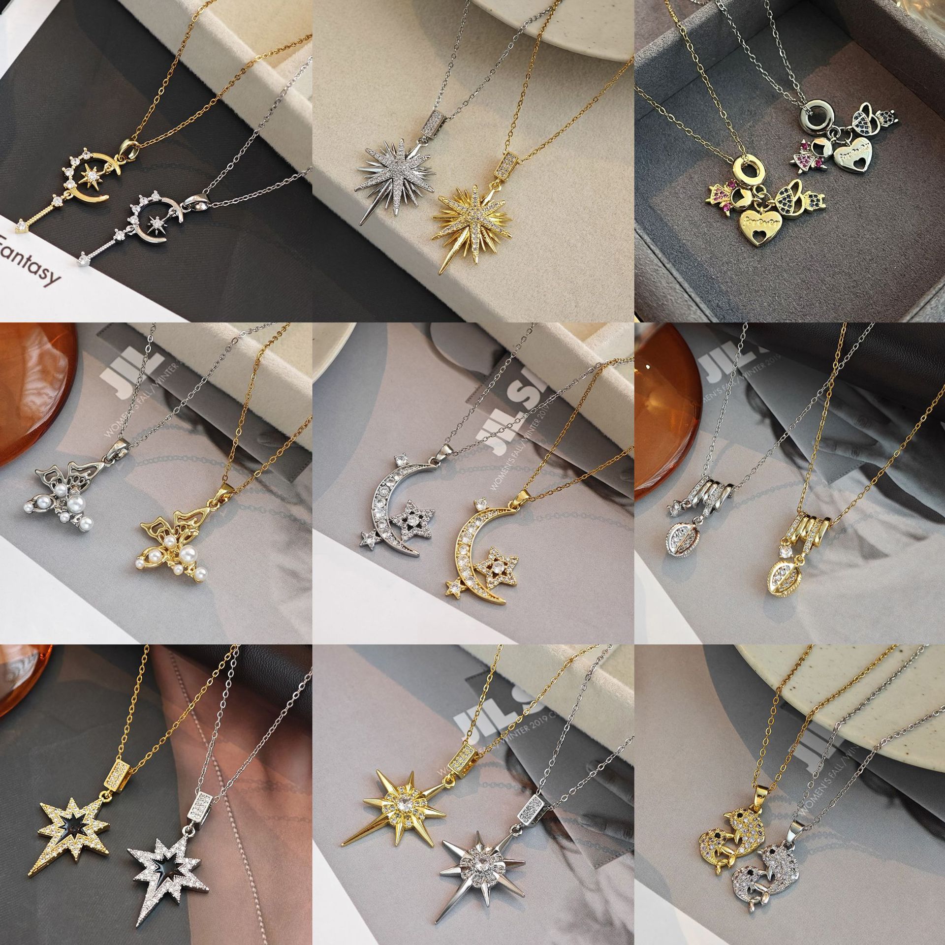 European and American Cross-Border Zirconia Pendant Necklace for Women, Fashionable Star Butterfly Pendant Necklace, High-End Versatile Clavicle Chain for Women