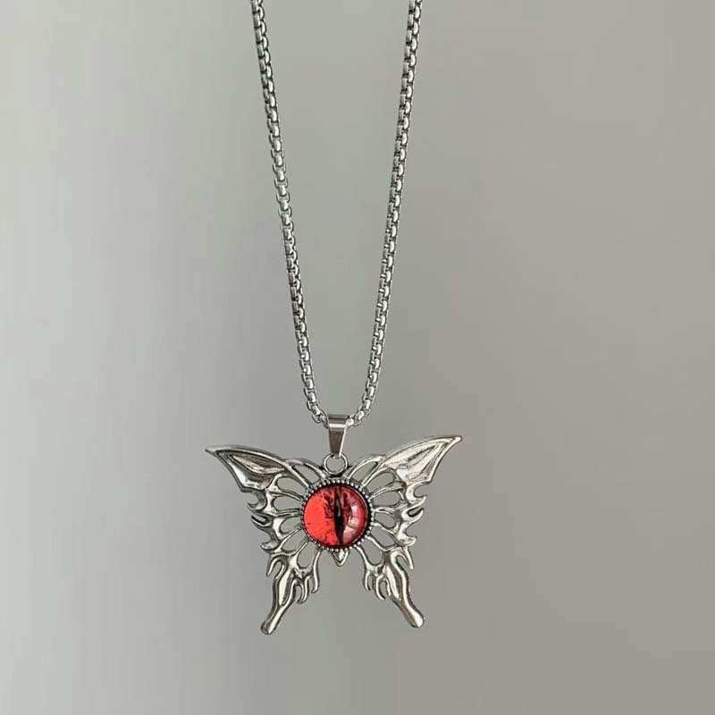 European and American Export New Niche Design Devil's Eye Pendant Necklace Gothic Style Butterfly Stainless Steel Necklace