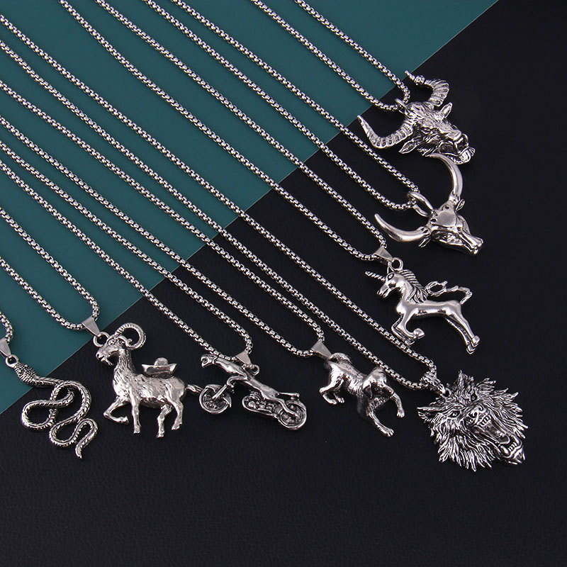 Animal Shape Cow and Sheep Unicorn Lion Snake Stainless Steel Necklace Cross-Border Hip-Hop Nightclub Trendyy Clothing Sweater Chain