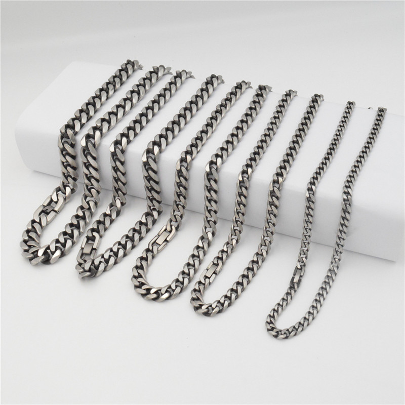 Cuban chain antique frosted stainless steel necklace popular at home and abroad men's hip hop cool jewelry single woven six-sided grinding