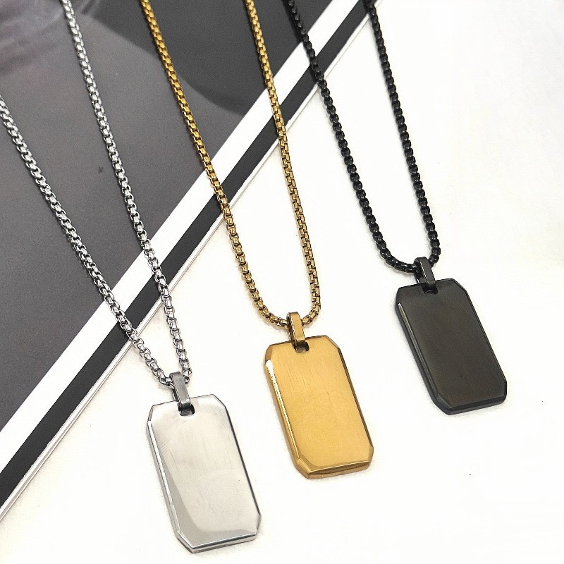 Europe and the United States hot stainless steel polished mirror military brand pendant personality niche design can be lettered couple necklace wholesale