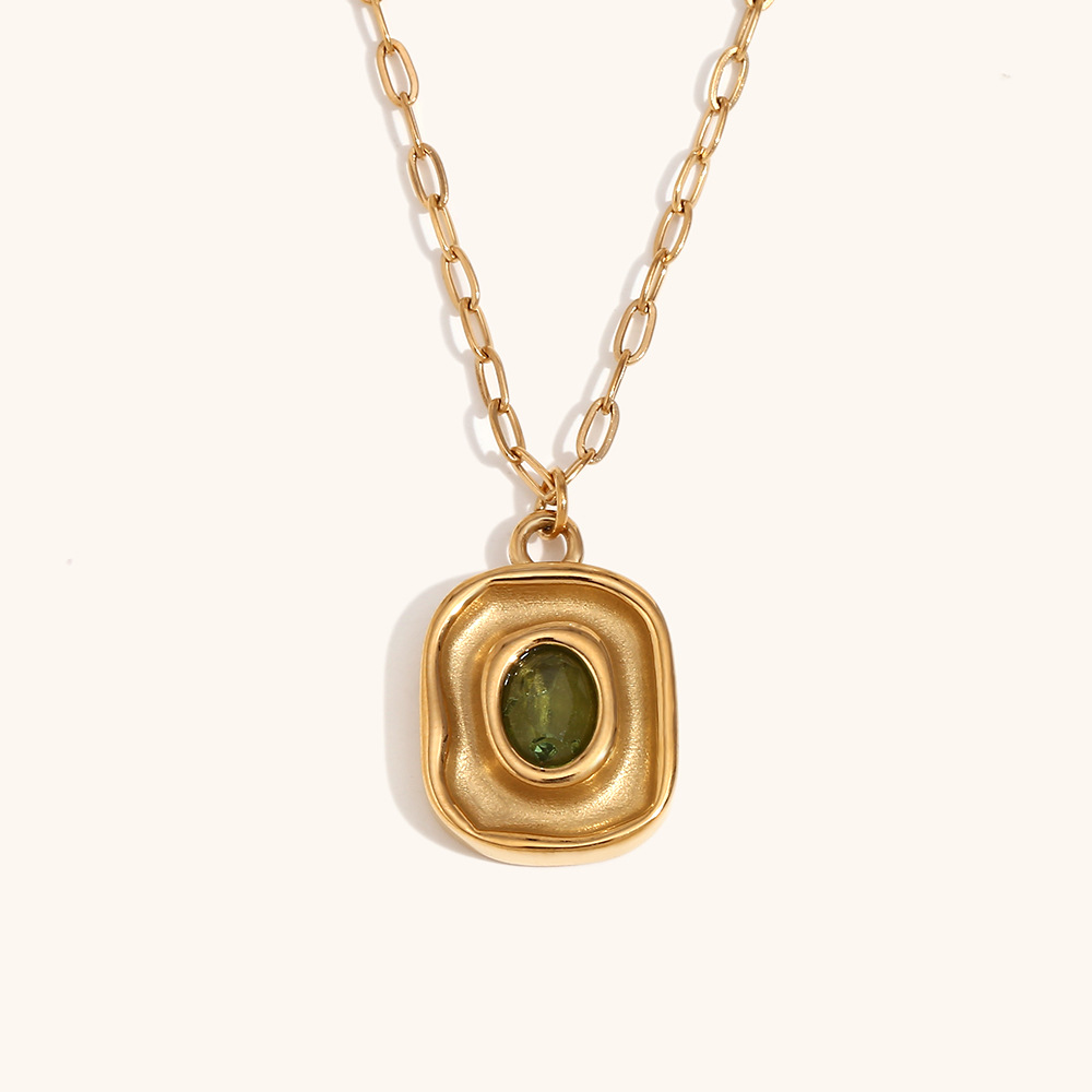 European and American Cross-border Hot Sale Retro Light Luxury Stainless Steel Plated 18K Gold Oval Green Zircon Pendant Pam Chain Necklace
