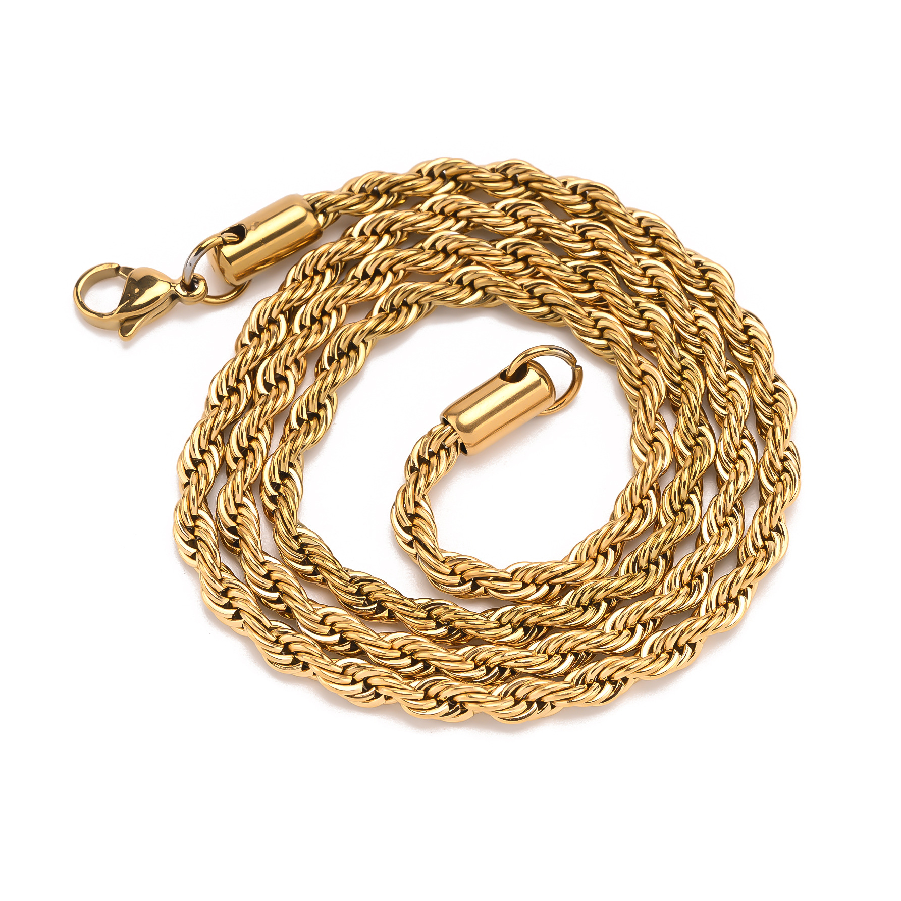 Hip-Hop Plain Chain 2-6mm Stainless Steel Twist Chain Necklace European and American Color-Preserving Twisted Necklace Factory Direct Sales Cross-Border Batch