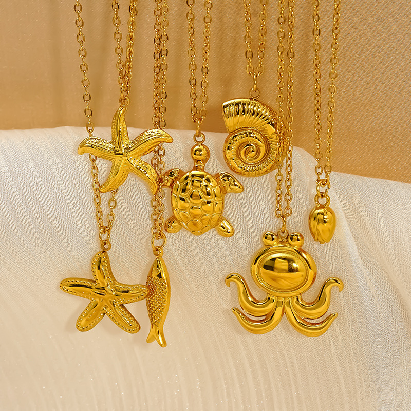 European and American Cross-Border Personalized Marine Series Necklace Women's Stainless Steel Plated 18K Gold Turtle Starfish Turtle Pendant Wholesale