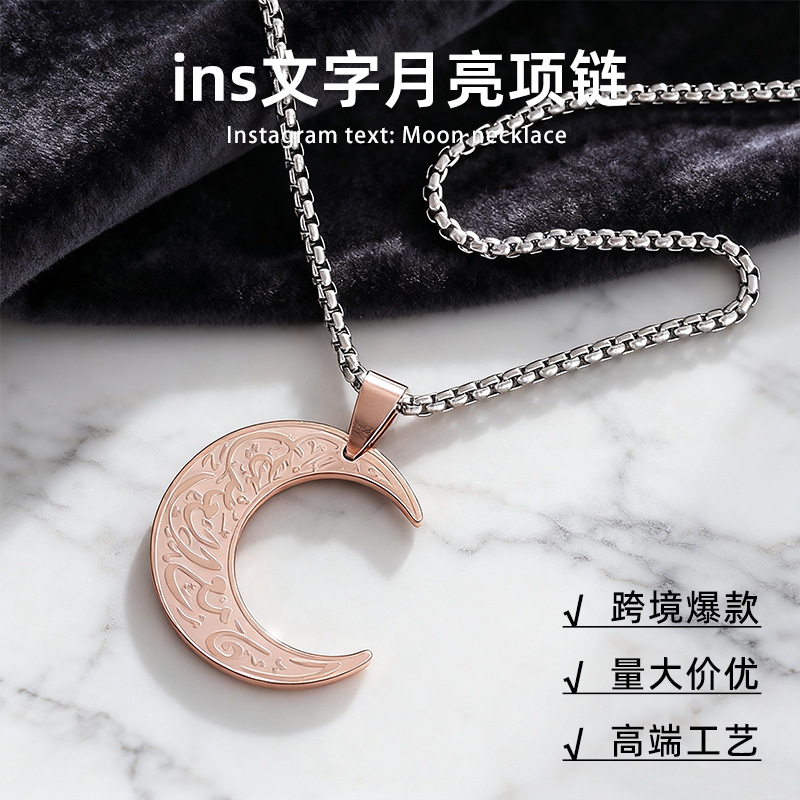 Cross-Border Ins Personalized High-End Niche Text Moon Pendant Necklace Men and Women Versatile New Stainless Steel Necklace