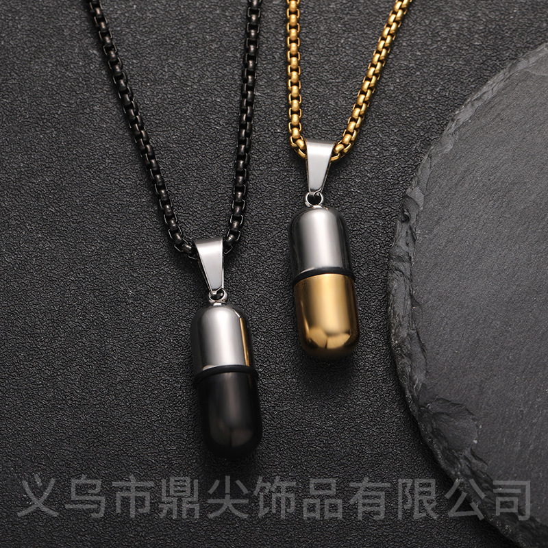 Stainless Steel Pill Perfume Bottle Necklace Ins Minimalist Style Pendant European and American Personality Fashion Punk Hip-Hop Accessory