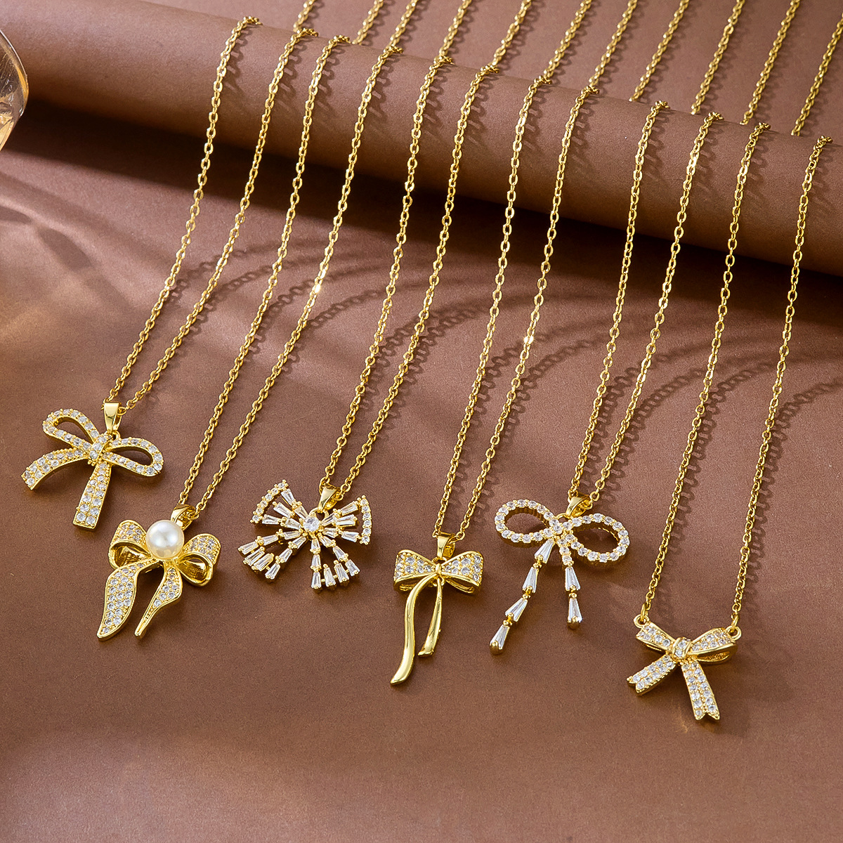 New Bow-Knot Diamond Super Flash Necklace for Women French Accessible Luxury Niche Design Cool Style Versatile Clavicle Chain