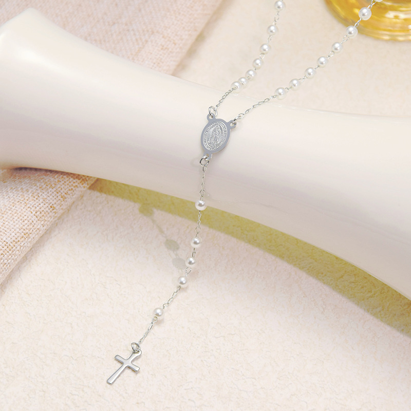 European and American Cross-Border Popular Religious Madonna Titanium Steel Cross Imitation Pearl Necklace Women's Light Luxury High-End Jewelry Wholesale