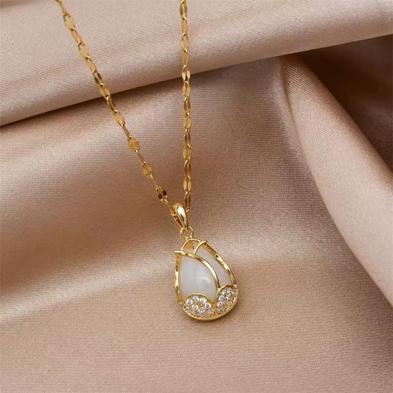 Necklace Light Luxury Milky White Gem Tulip Collarbone Pendant Necklace Women Fashion Elegant Jewelry