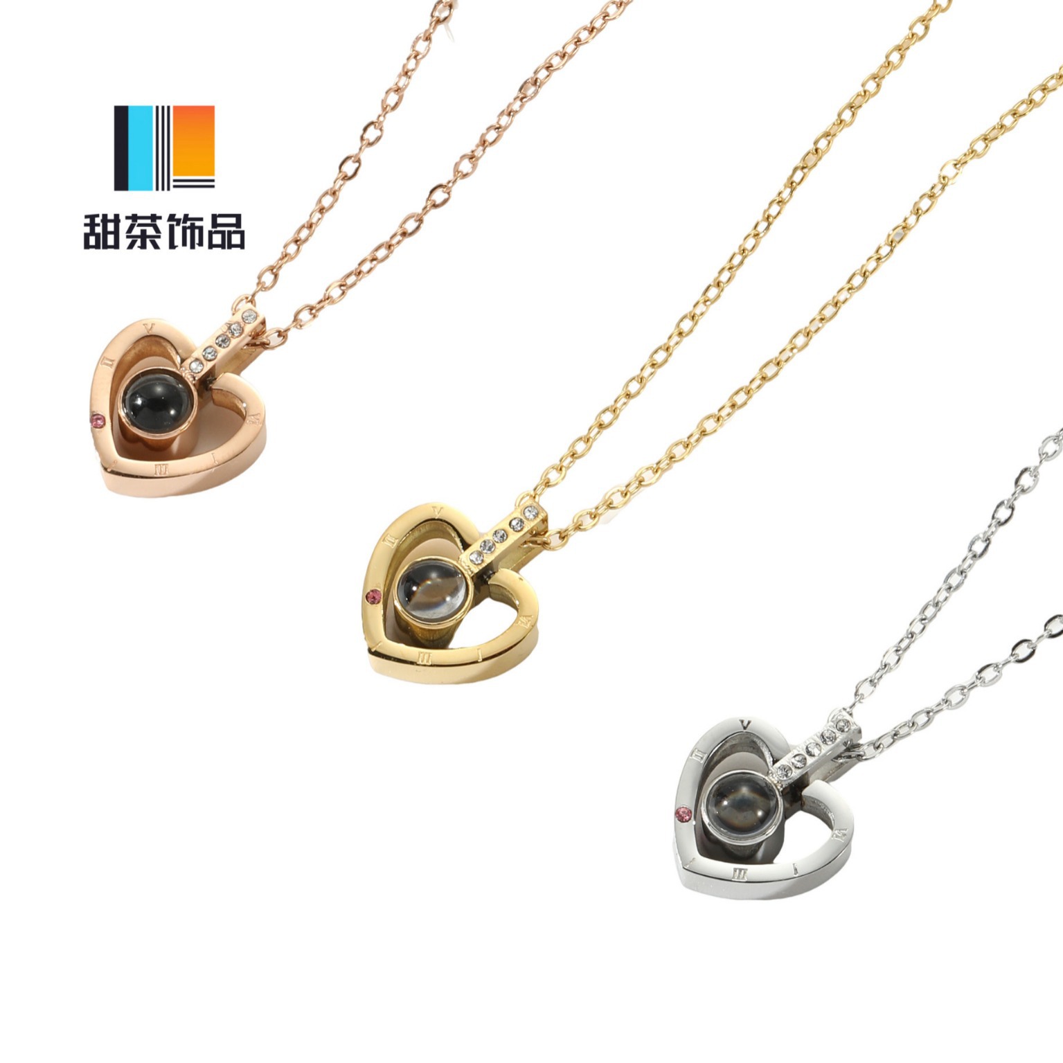 European and American cross-border 100 languages I love you projection necklace creative Diamond-embedded love TikTok same clavicle necklace