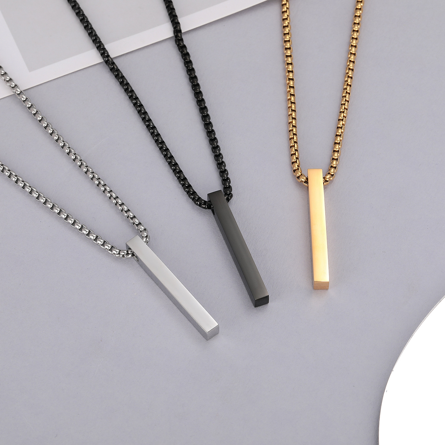 Cross-border new stainless steel hip-hop necklace men's three-dimensional rectangular titanium steel necklace lovers pendant jewelry wholesale