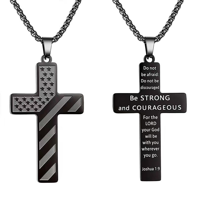 Amazon's Popular American Flag Cross Necklace Men's Non-Fading Pendant Stainless Steel Necklace Cross Cross-Border