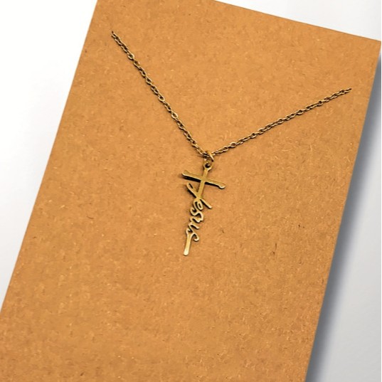 Women's Holiday Gift Silver English Letter Cross Necklace Stainless Steel Letter Engraved Cross Necklace