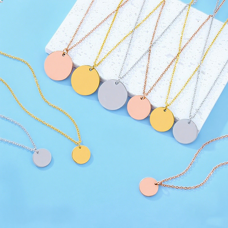 Titanium Steel Necklace European and American Cross-Border Round Pendant Blank Wordless Material Holiday Gift Engraved Stainless Steel Necklace