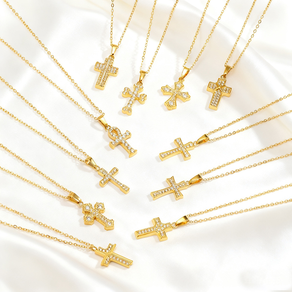 Store Manager Recommends Stainless Steel Light Luxury Micro-Inlaid Zircon Small Cross Pendant Necklace Agate Chain Titanium Steel Clavicle Necklace for Women