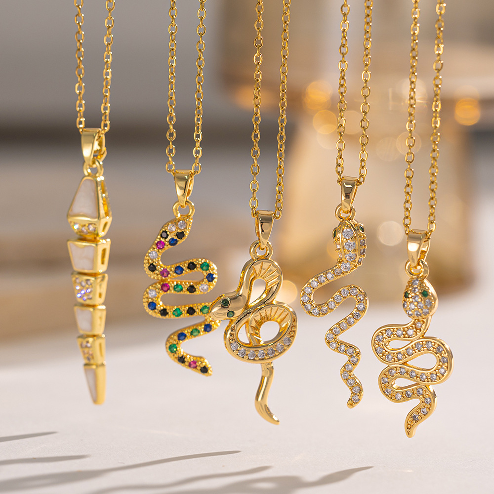 Cross-Border Fashion Popular Titanium Steel Necklace Micro-Inlaid Bright Stone Snake Pendant Titanium Steel Necklace Popular Personality Temperament Versatile Light Luxury