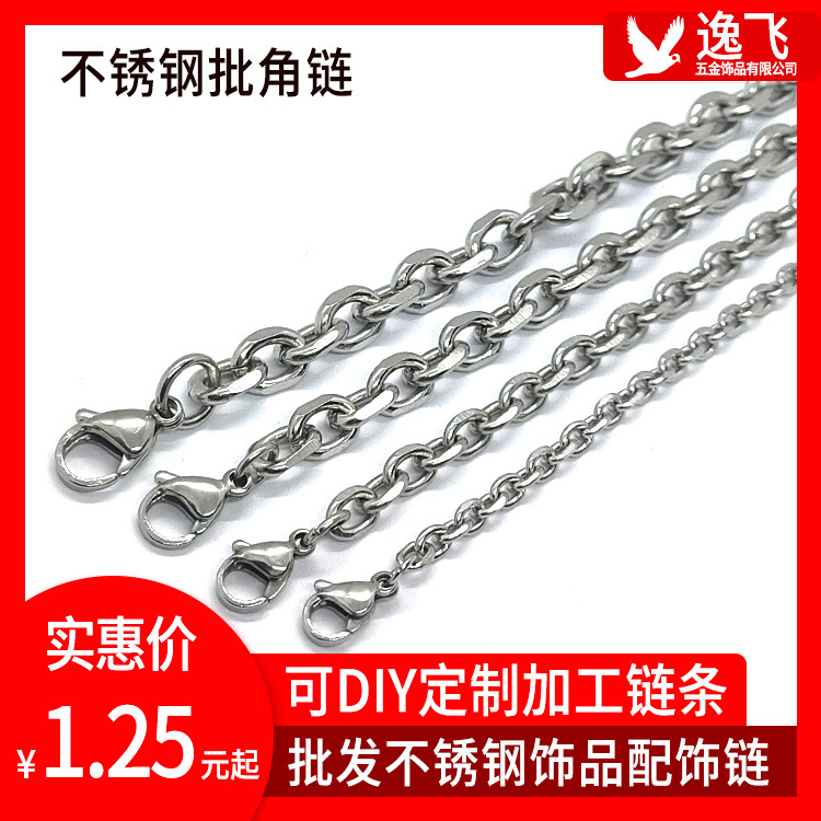 European and American Hot Selling Trendy Men's Rugged Stainless Steel Batch Corner O-Chain Necklace Chain Too Corner Chain Clavicle Chain Pendant Matching Chain